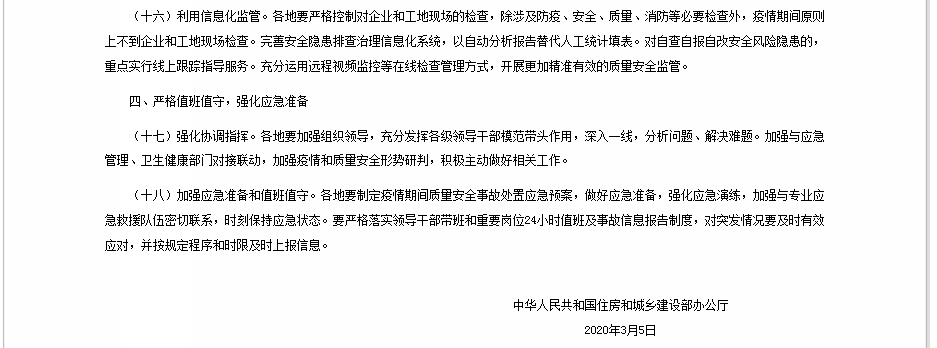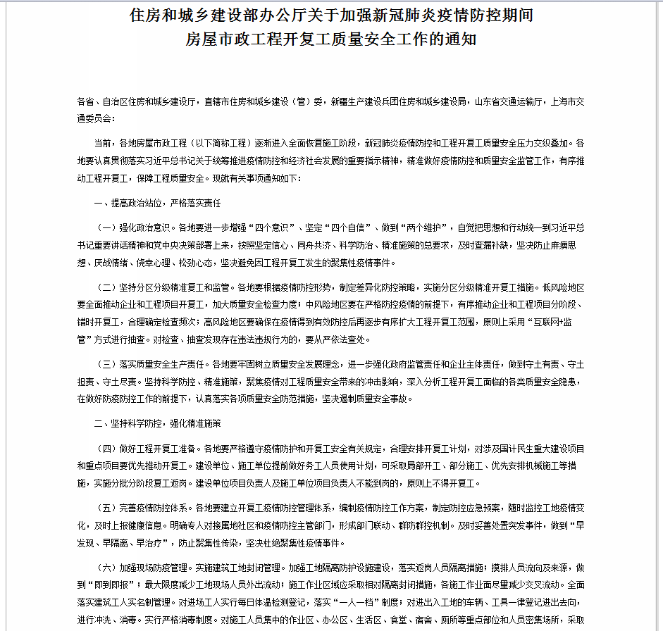 關(guān)于加強新冠肺炎疫情防控期間房屋市政工程開復(fù)工質(zhì)量安全工作的通知