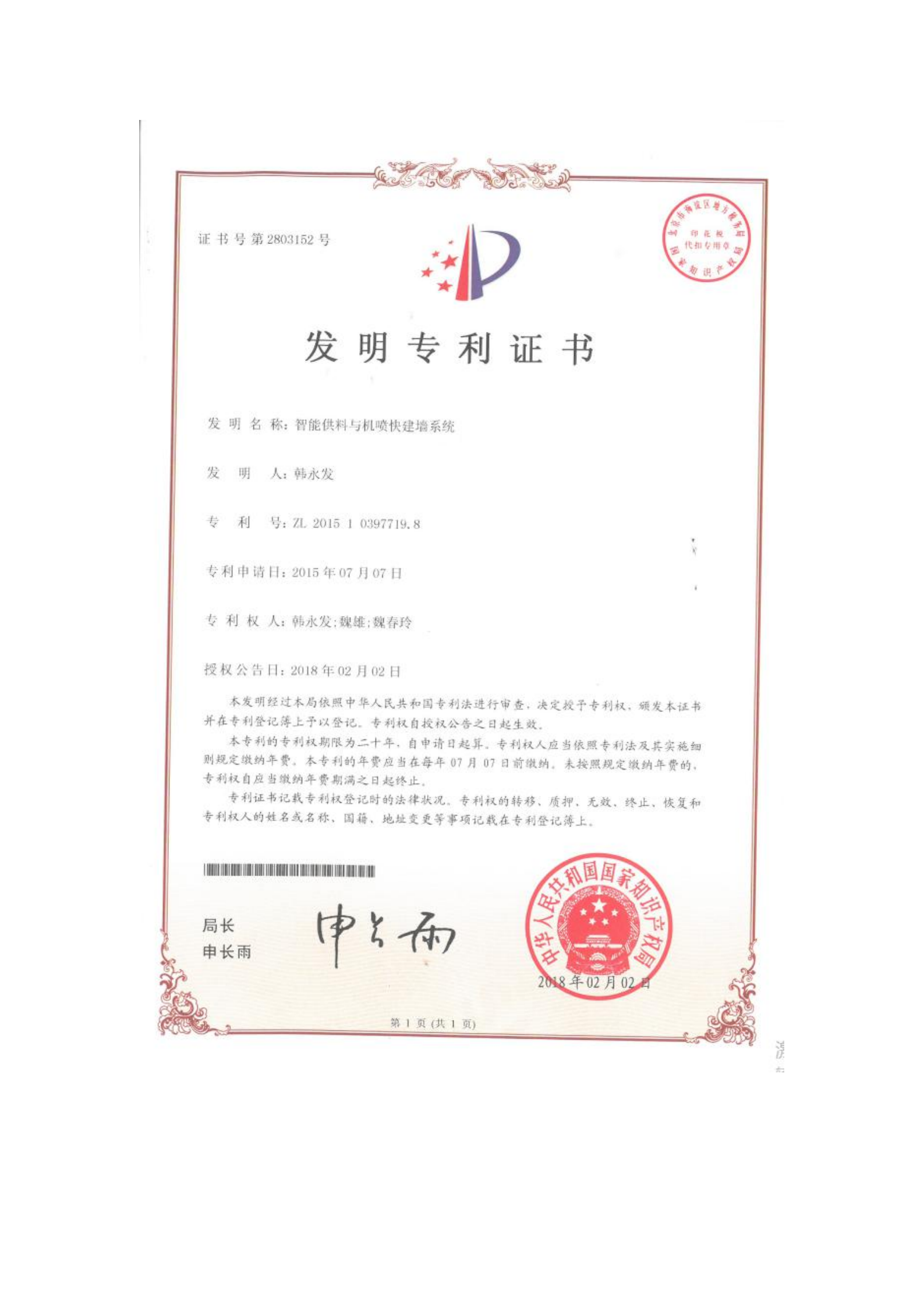 智能供料與機(jī)噴快建墻系統(tǒng)-發(fā)明專利(韓永發(fā))