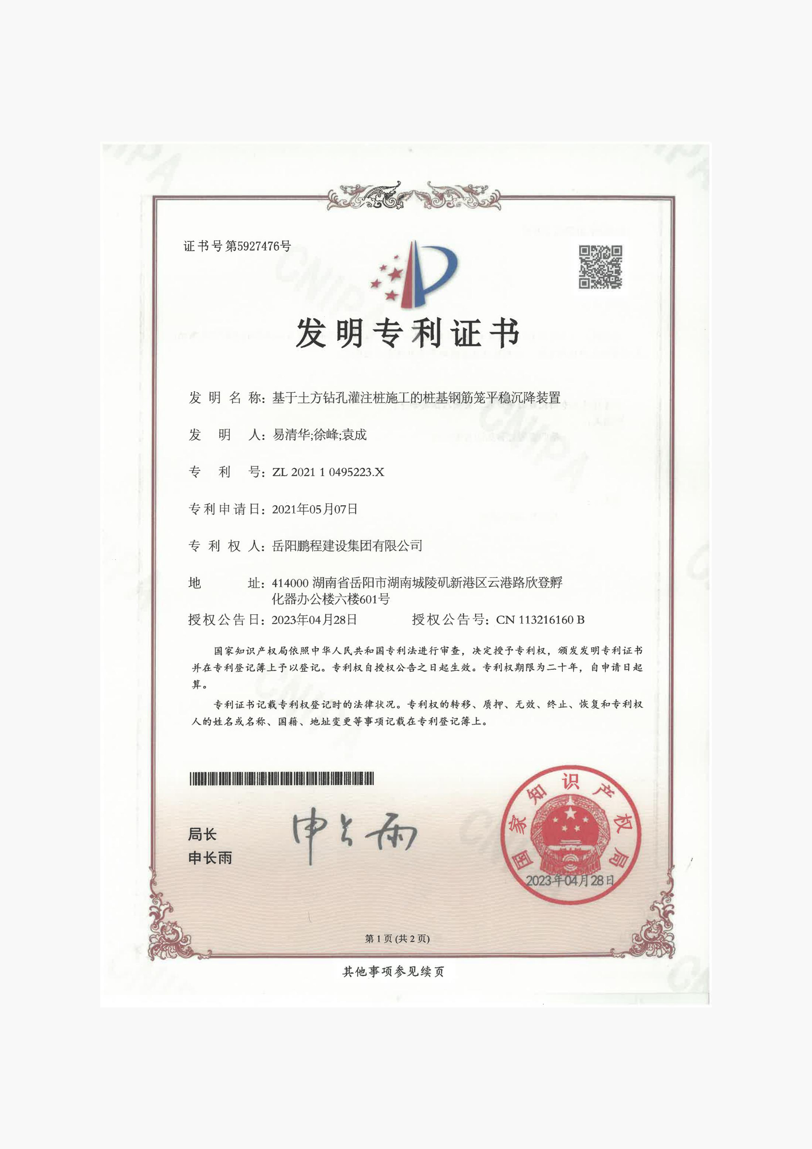 基于土方鉆孔灌注樁施工的樁基鋼筋籠平穩(wěn)沉降裝置(易清華、徐峰、袁成)
